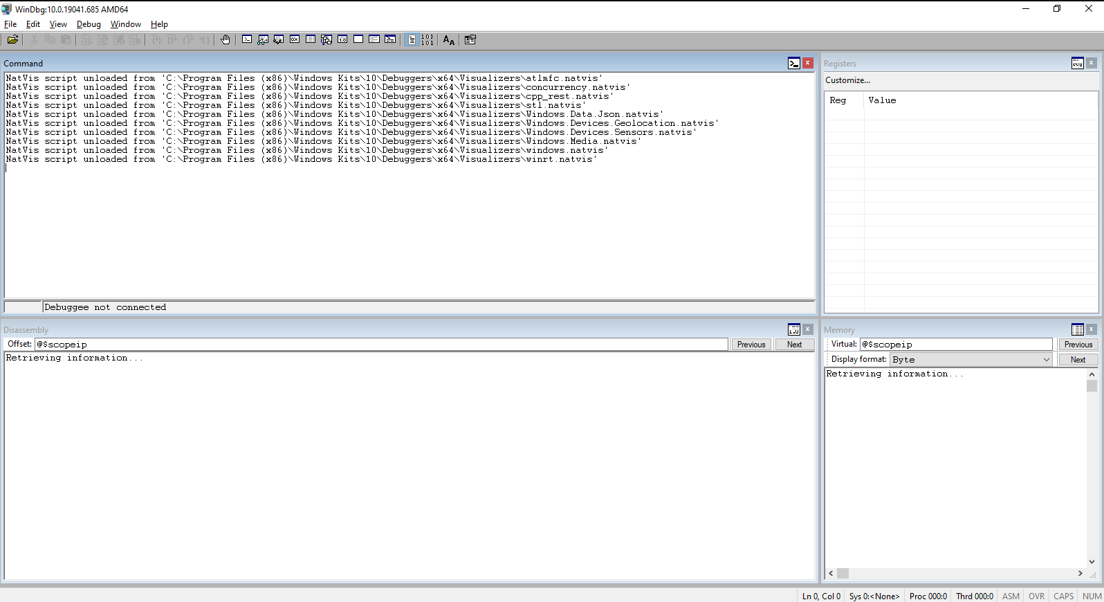 <access type>== e (for execute)<data size>== 1 (WinDbg mandates that the size must be 1 if the type is “e”)<address>== an absolute address, symbol name, or calculation of an address like “rsp+0x24”