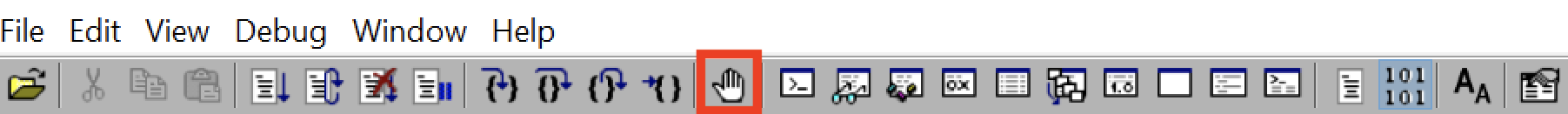 go” to continue execution, and the “Break” icon (shortcut ctrl+break) as shown below