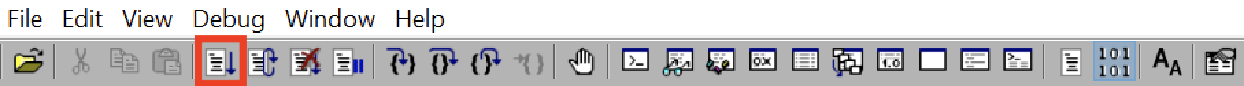 pa <address or symbol name>” in the command window (for step to address) - This instruction will print out every instruction it steps over on its way to that address.