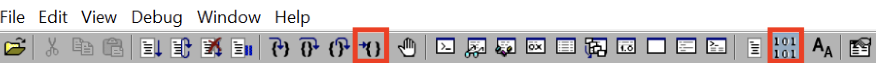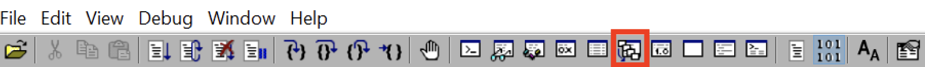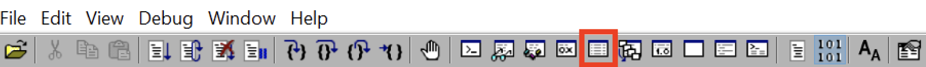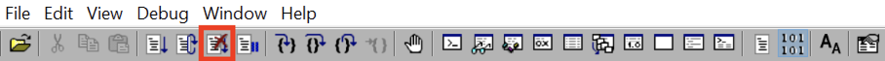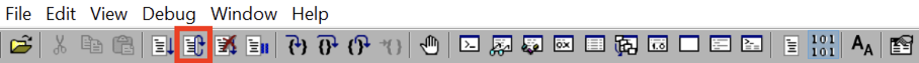 - Enter “bp <address or symbol name>” in the command window (for BreakPoint)