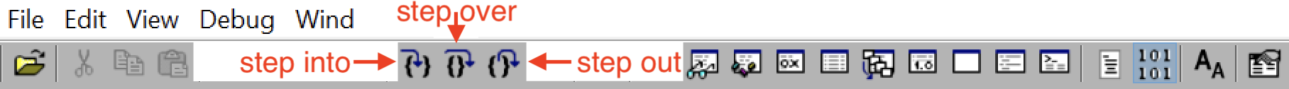 pcommand in the command window by itself will single “step over” a single instruction. - The